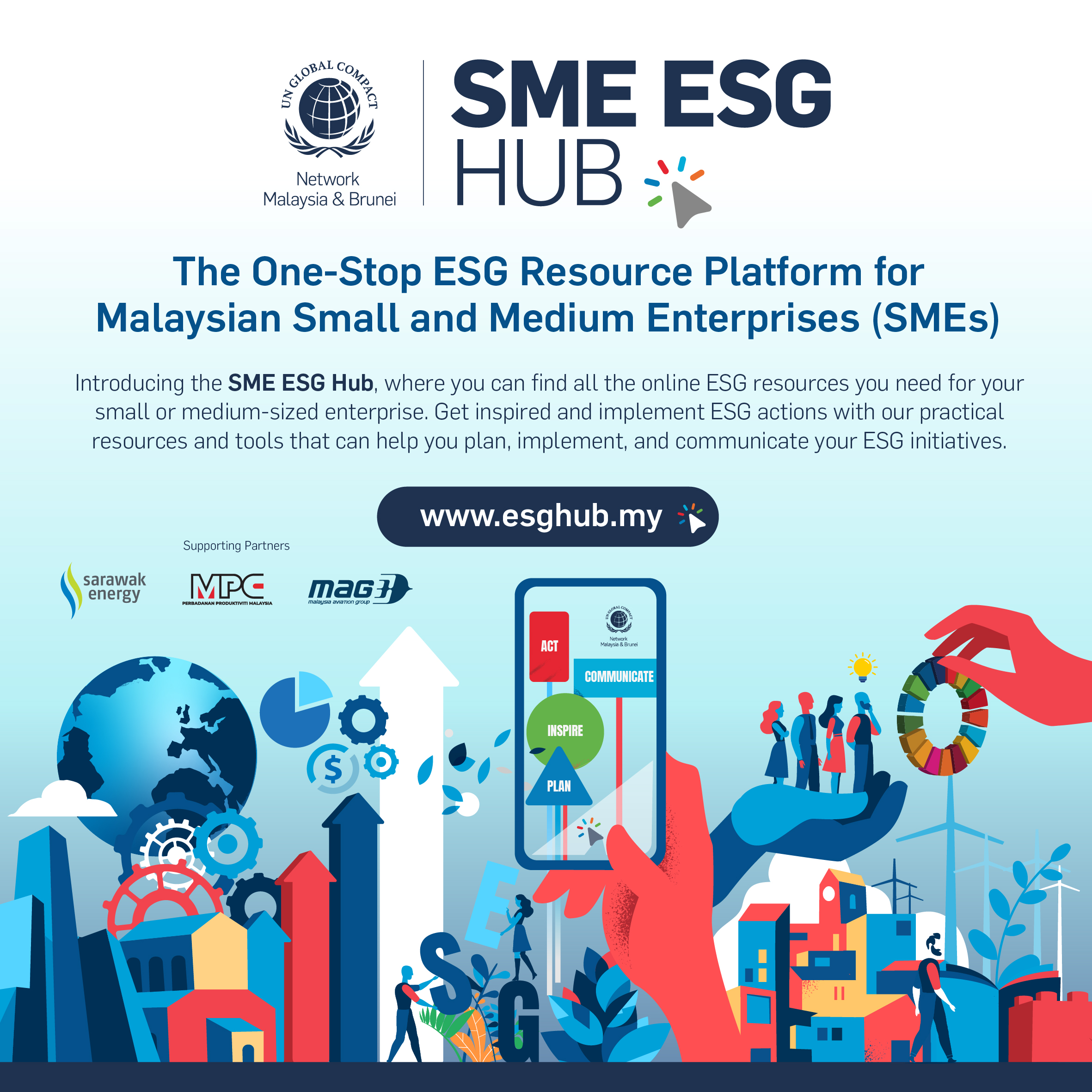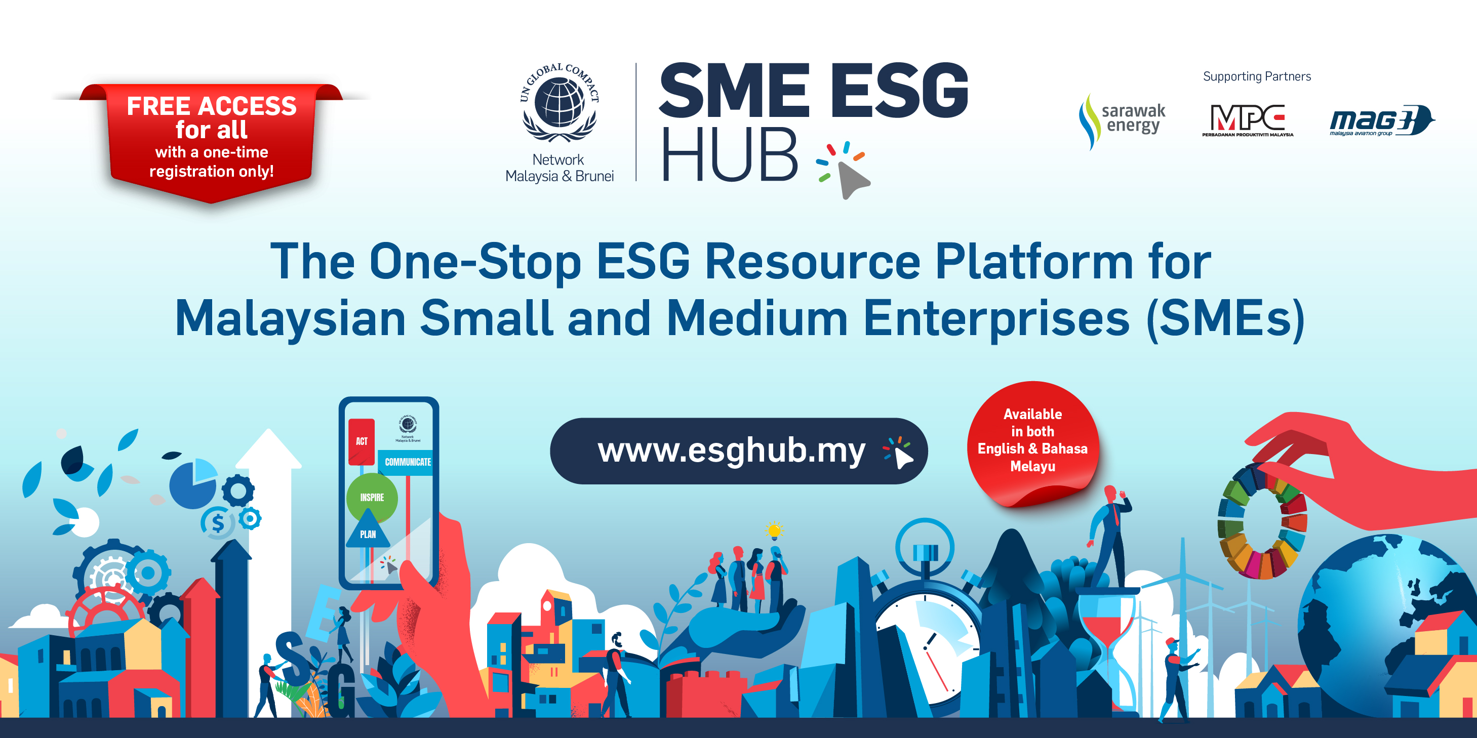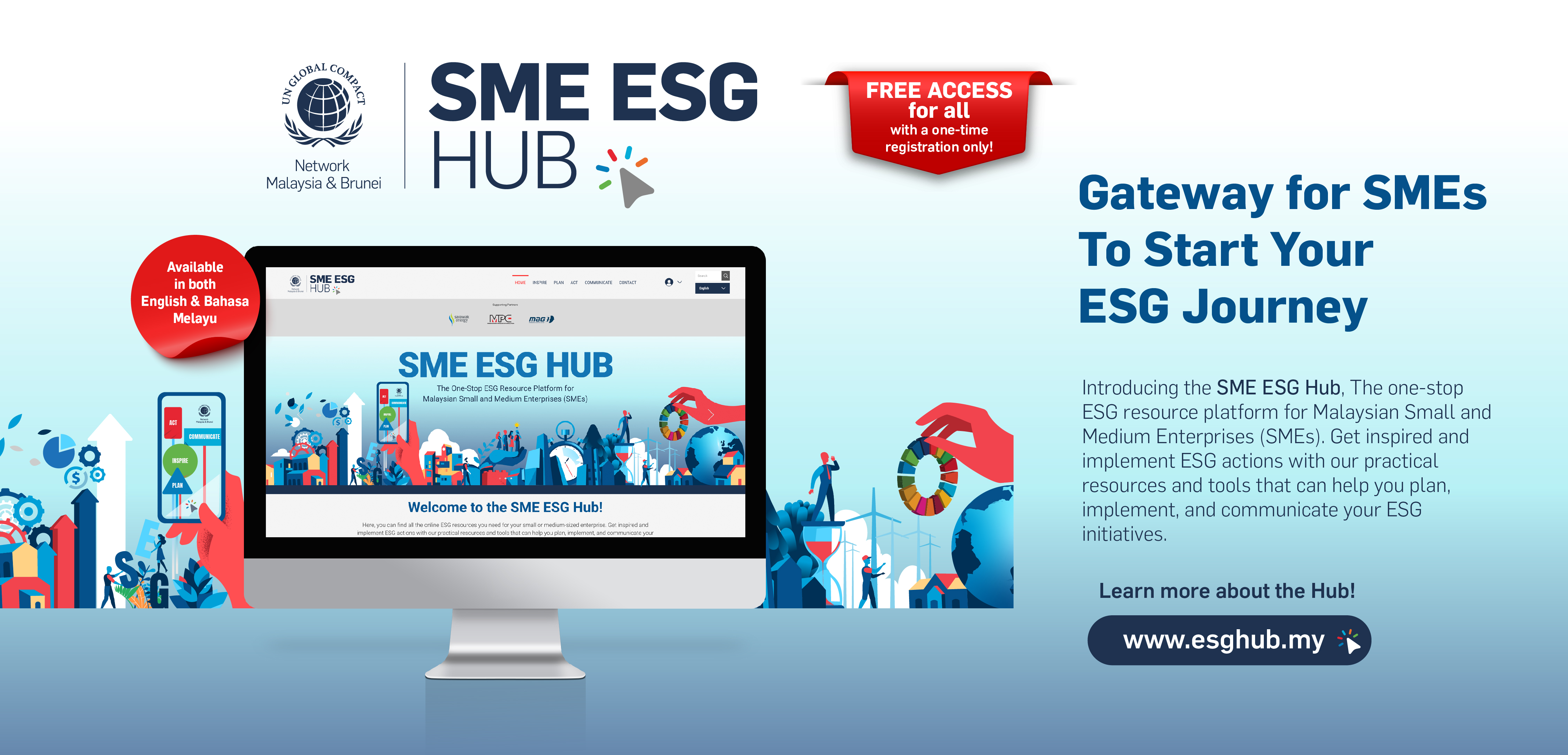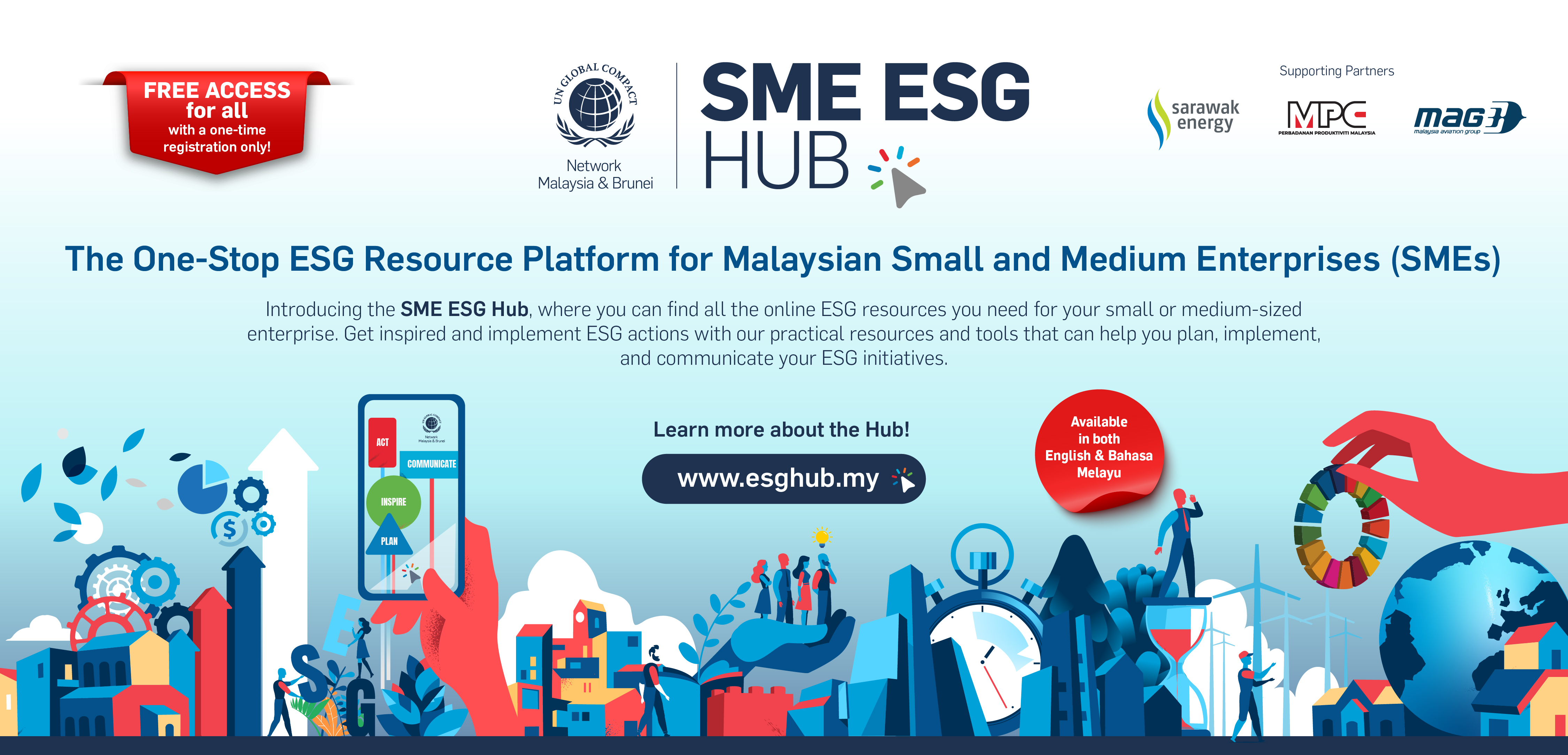 Hence, we are pleased to invite all SMEs to leverage on the SME ESG Hub by UN Global Compact Network Malaysia & Brunei. This hub is a platform where SMEs can find all the online ESG and sustainability resources they need for their business.